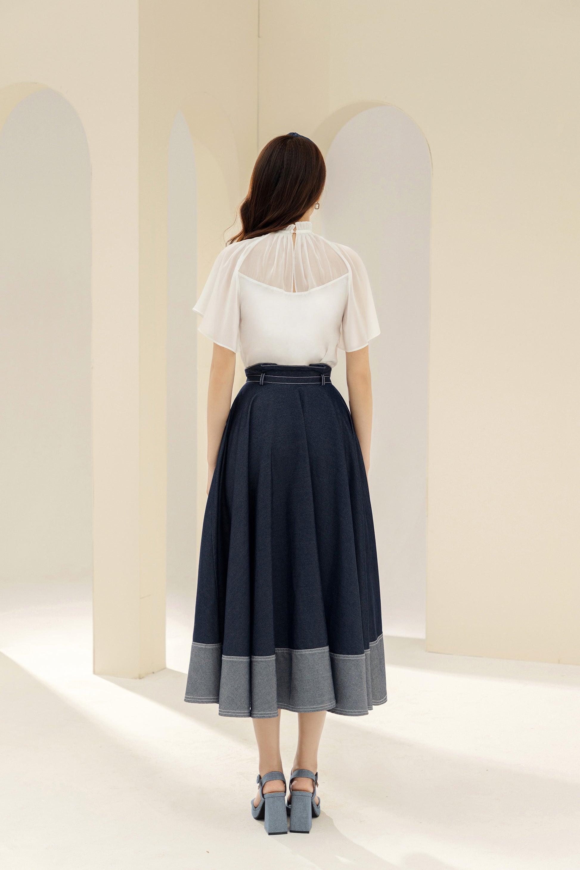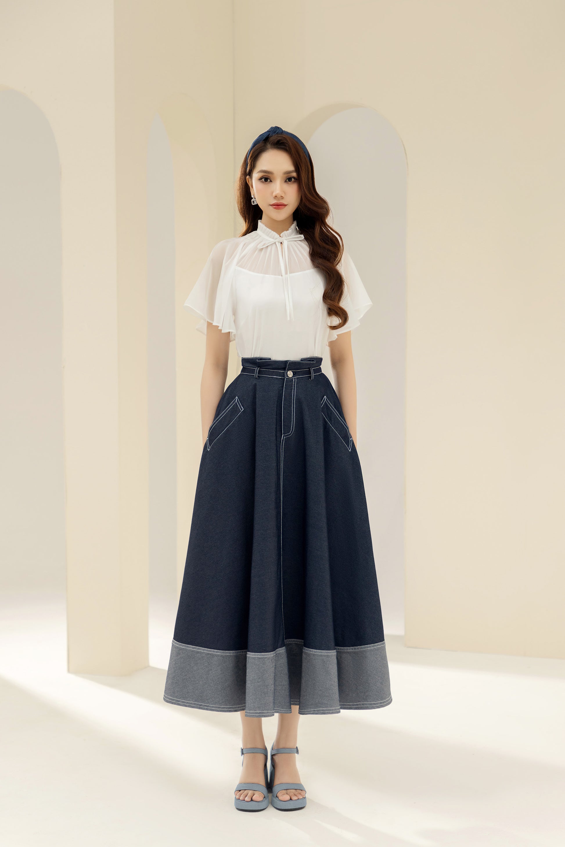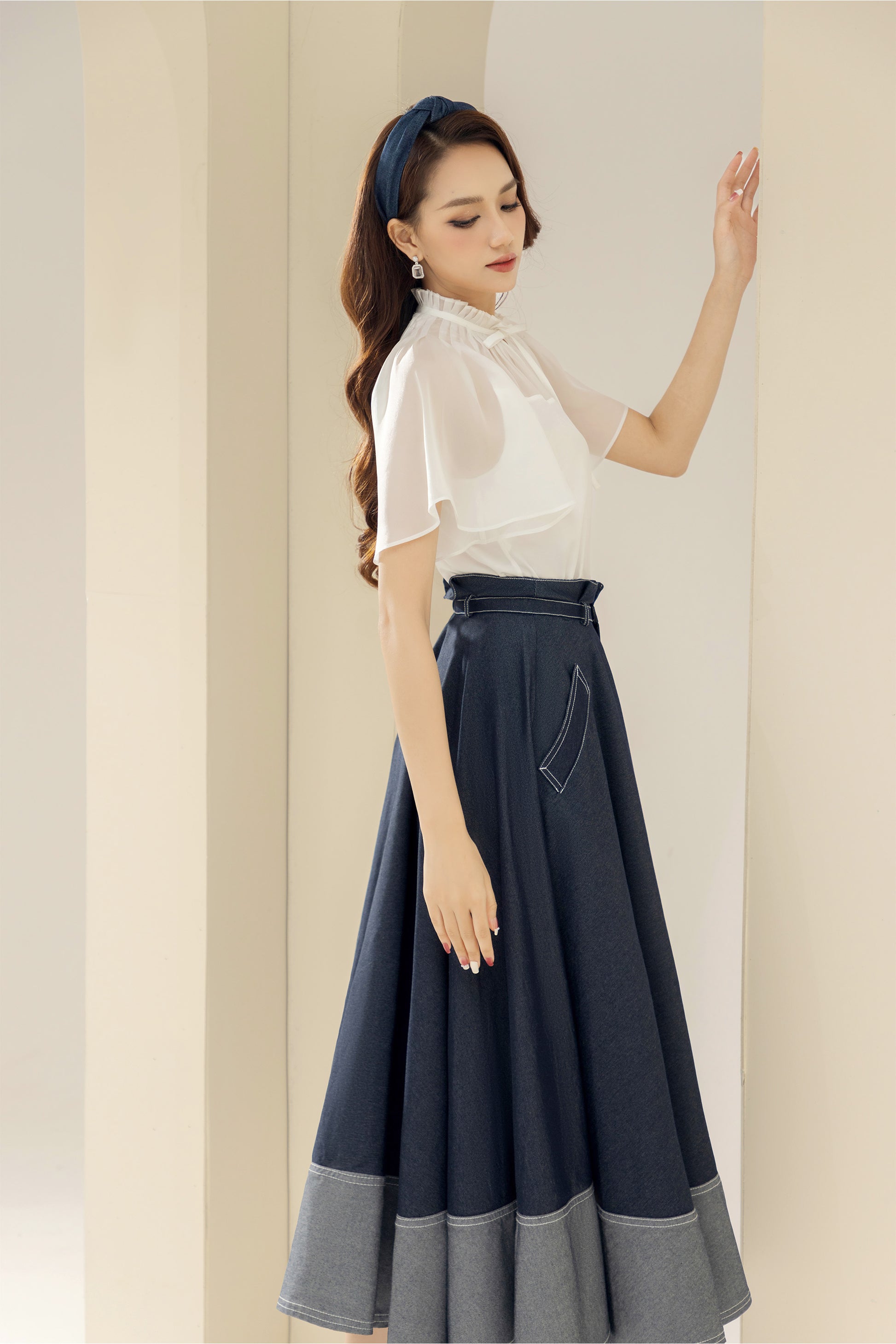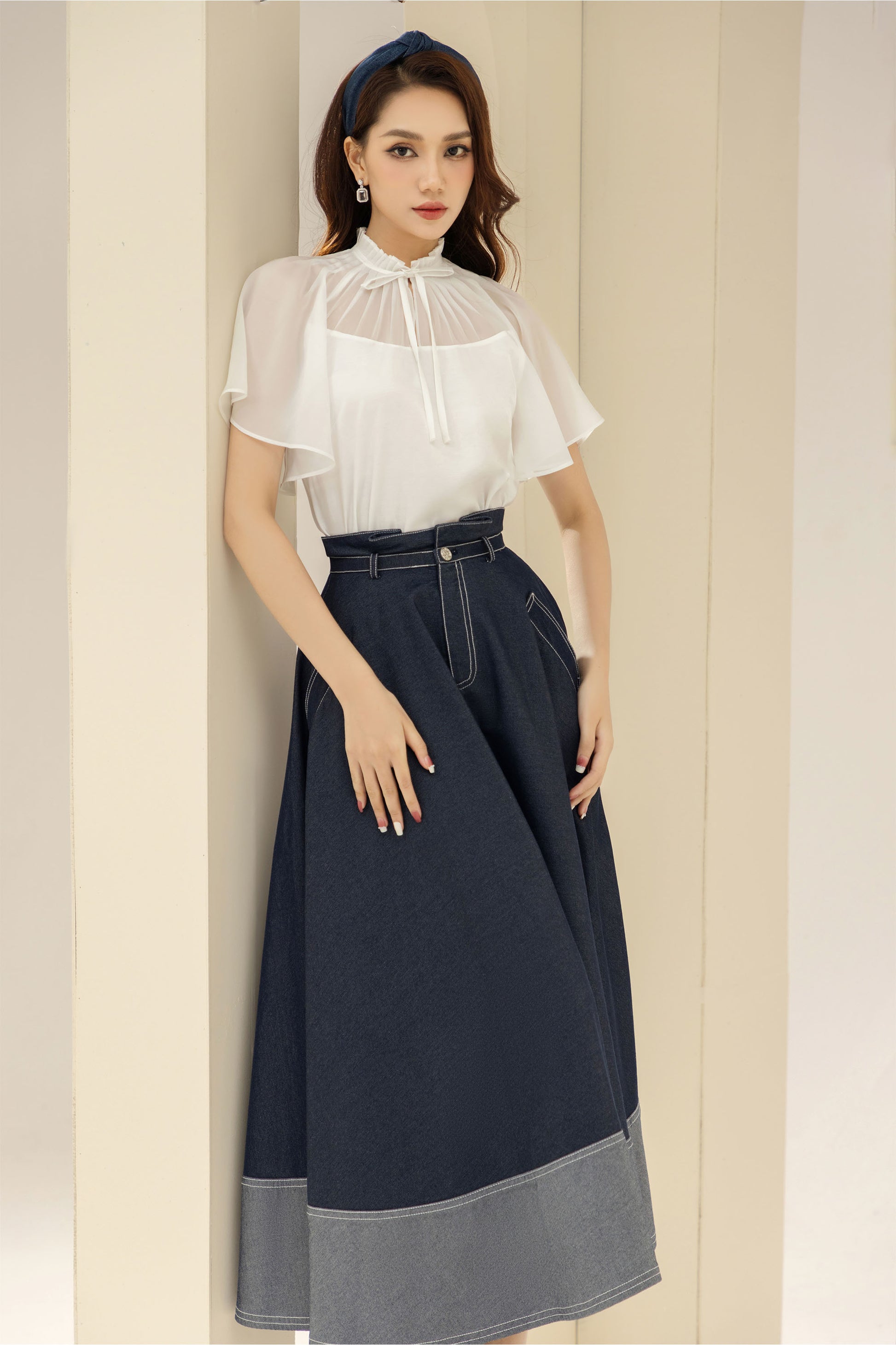 Combining the Évora blouse with the Havana skirt creates a well-rounded ensemble that perfectly balances elegance, sophistication, neatness, and youthful dynamism. This combination is suitable for various activities, from casual strolls and coffee outings to important meetings or events.